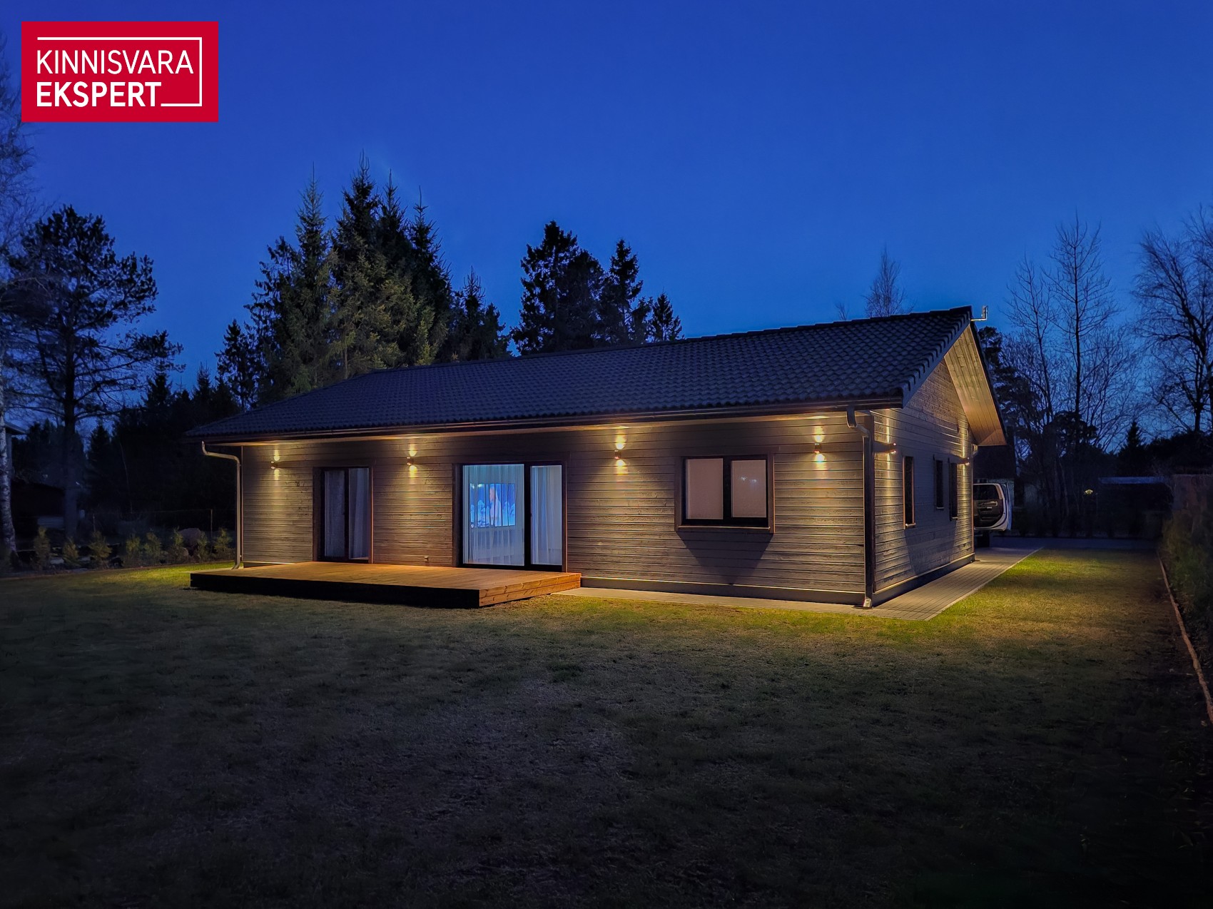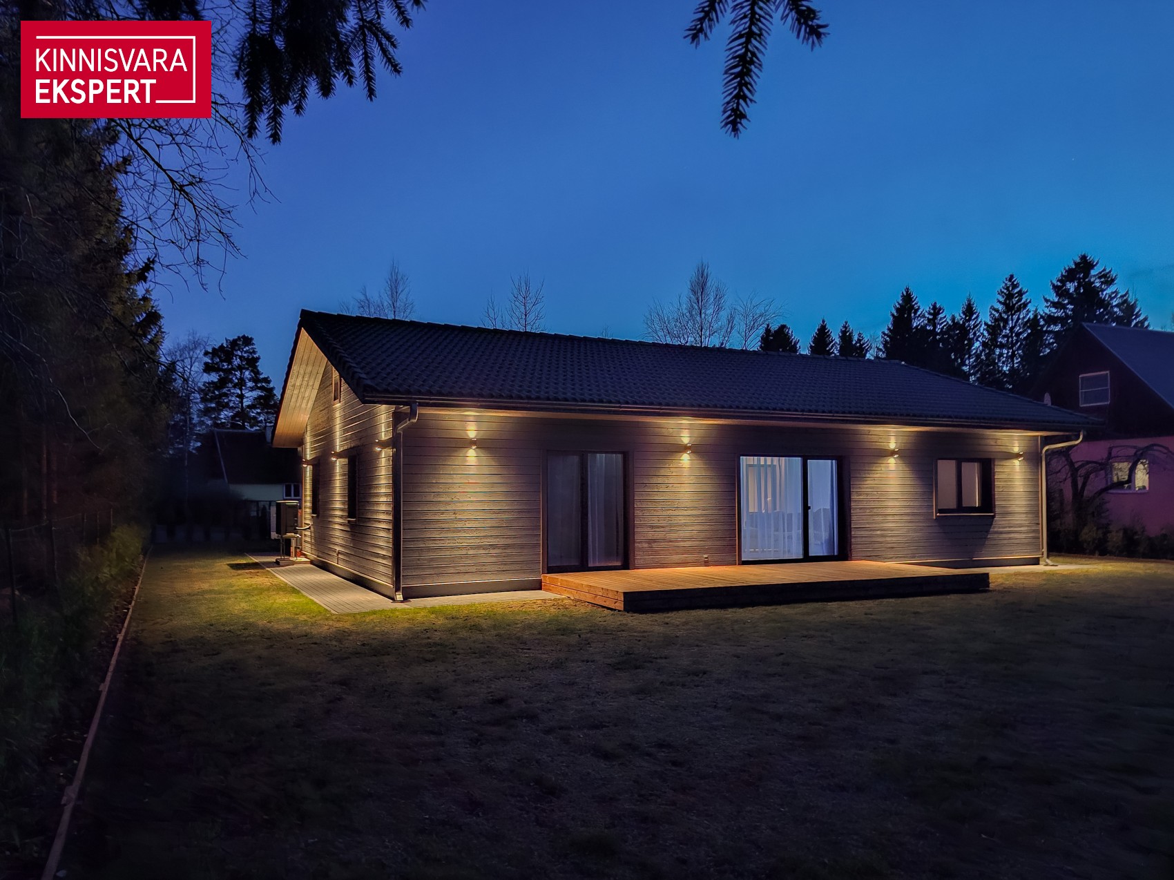 Kohtvalgustus sisseehitatud katusekasti, et pimedal ajal oleks valgust ja hubasust.