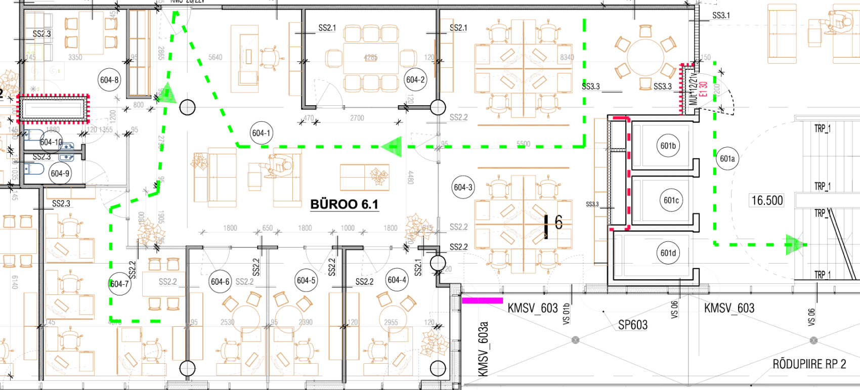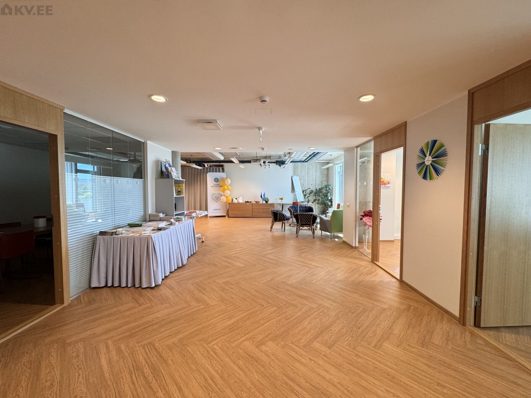 • Büroo on valmis ehitatud ning sisaldab köögimööblit ja garderoobikappi