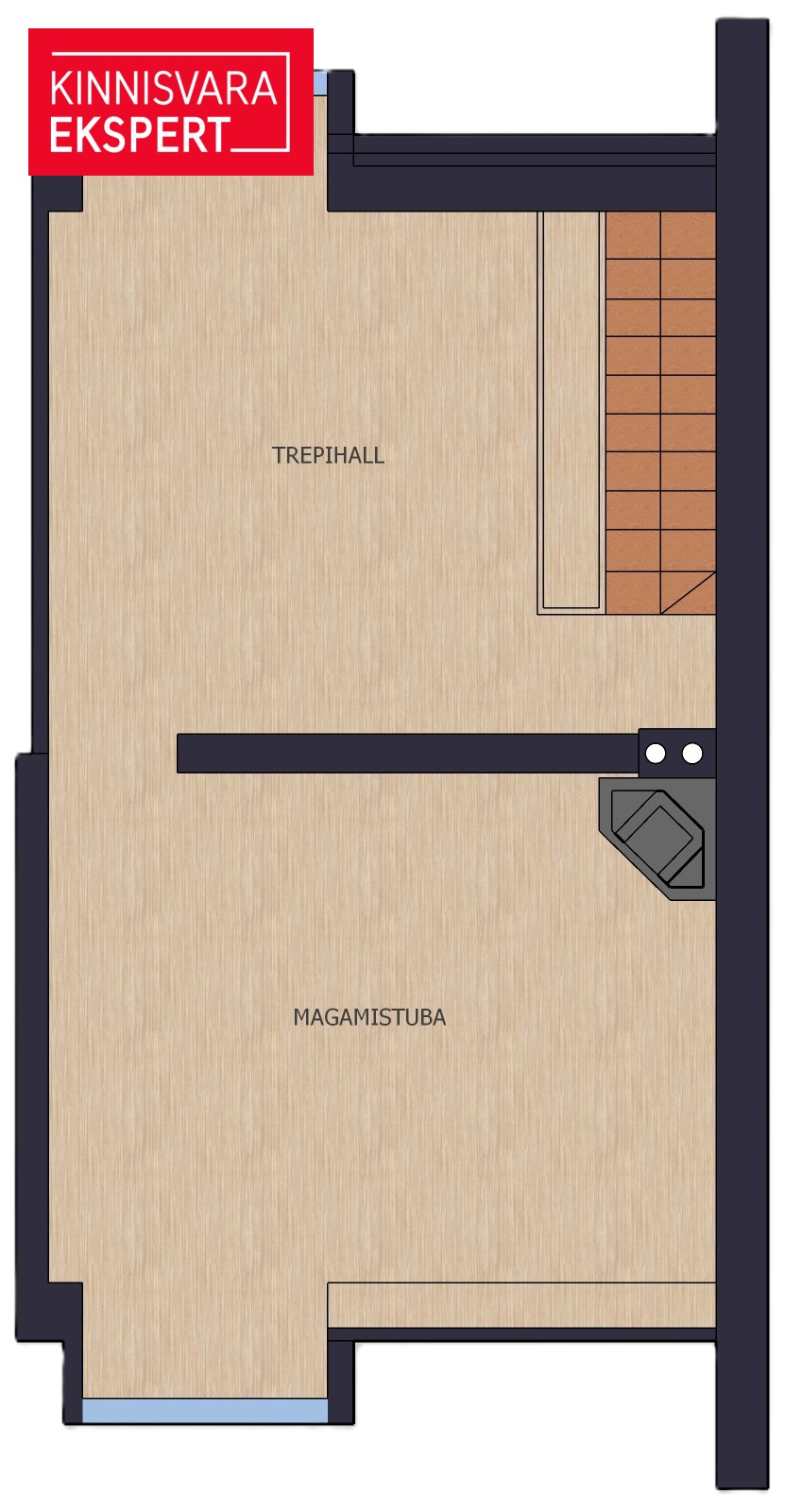 Kolmandal korrusel asub treppihall ja privaatne kaldkatusega magamistuba koos kaminaga.